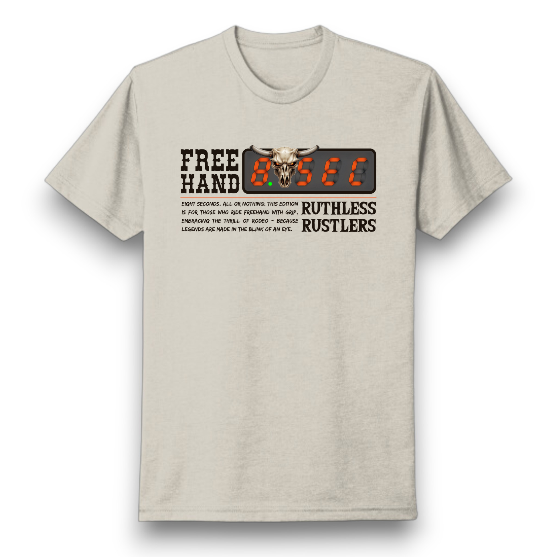 Eight seconds—everything on the line. This tee is for those who ride freehand, holding on with grit and heart, embracing the raw thrill of rodeo. Whether you’re in the chute or chasing dreams under the open sky, it’s all or nothing. Because in just a blink, legends are made. Wear it proud, ride fearless, and leave it all in the arena.