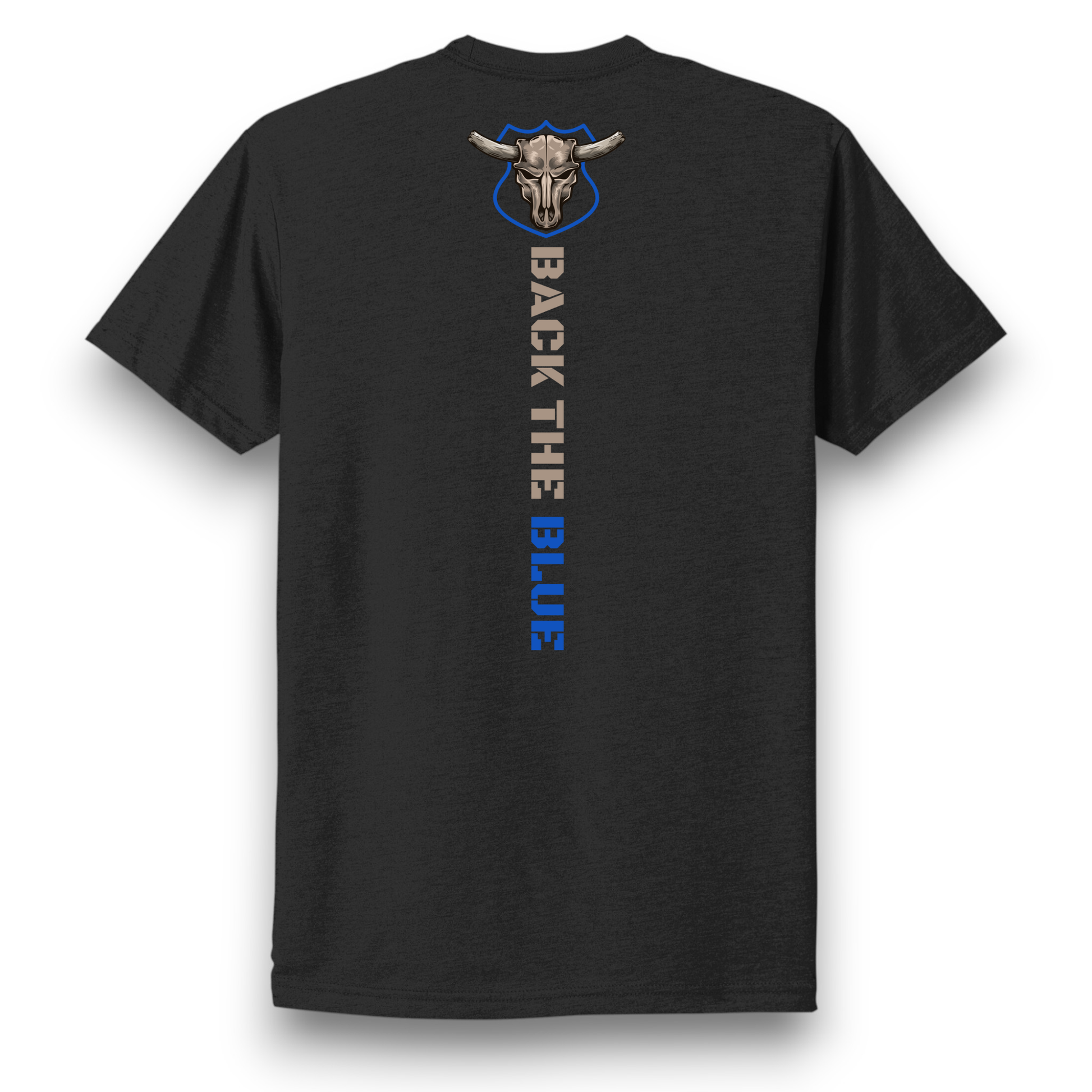 Introducing the Ruthless Rustlers Back The Blue T-Shirt – a bold tribute to our roots and an expression of unwavering support for law enforcement. Featuring the iconic Ruthless Rustlers Bull Skull emblem alongside the statement “Back The Blue”, this tee represents solidarity with those who protect and serve our communities. Designed for both comfort and style, it’s more than just a shirt—it’s a statement. Wear it with pride, stand united, and show your support with Ruthless Rustlers, where style meets purpose.