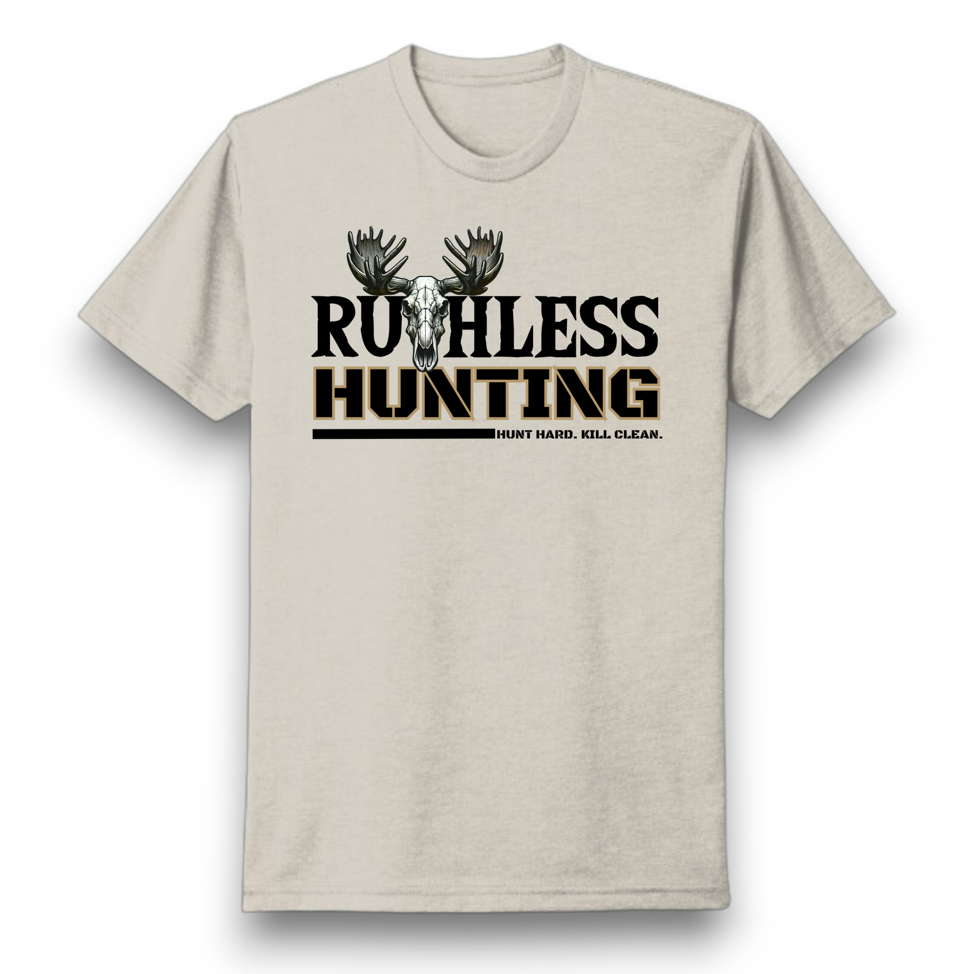 Part of our Ruthless Hunting Collection, this tee features the iconic moose skull with an aggressive rack, backed by the motto “Hunt Hard. Kill Clean.” It’s made for those who take the hunt seriously and wear their code with pride.