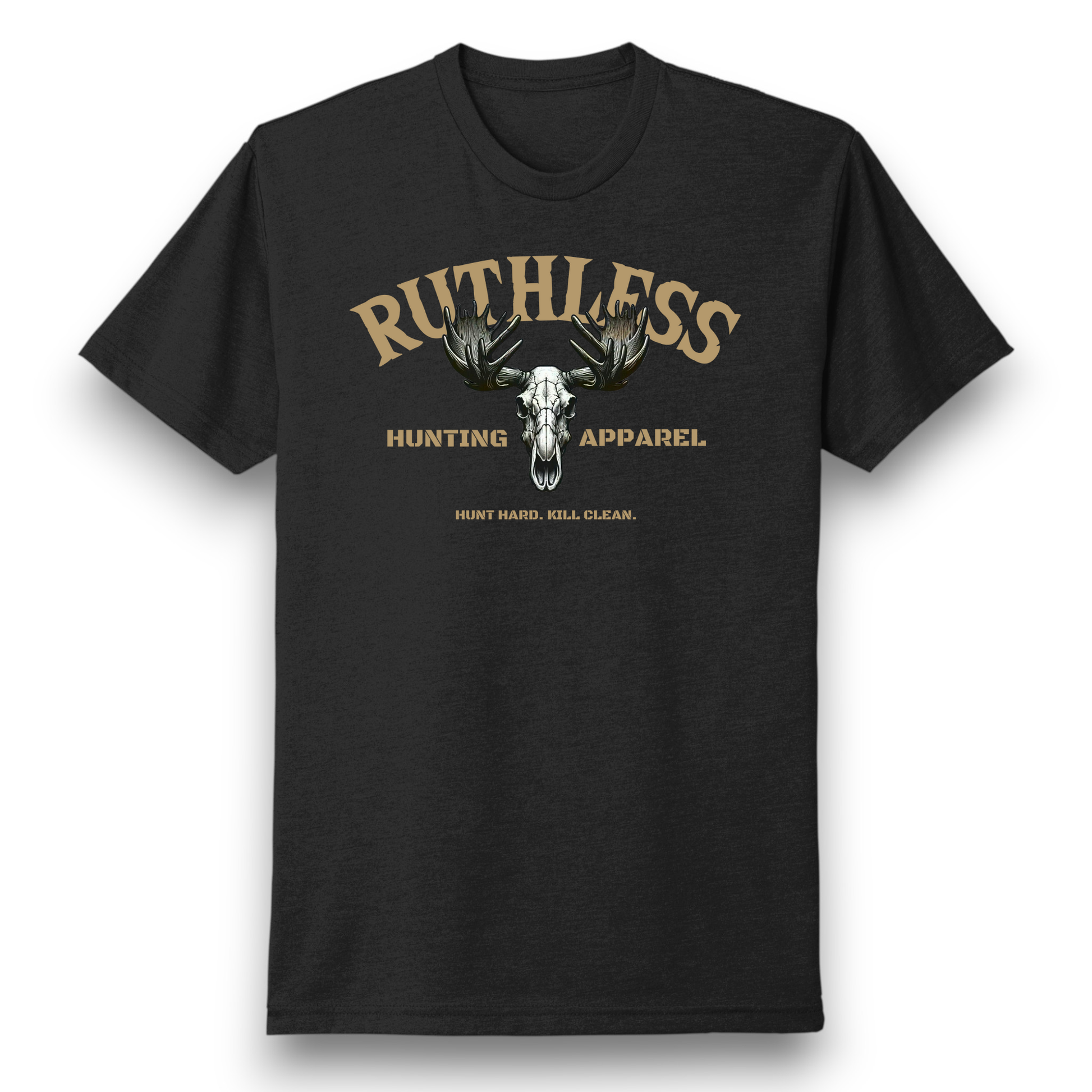 Part of our Ruthless Hunting Collection, this tee features the iconic moose skull with an aggressive rack, backed by the motto “Hunt Hard. Kill Clean.” It’s made for those who take the hunt seriously and wear their code with pride.
